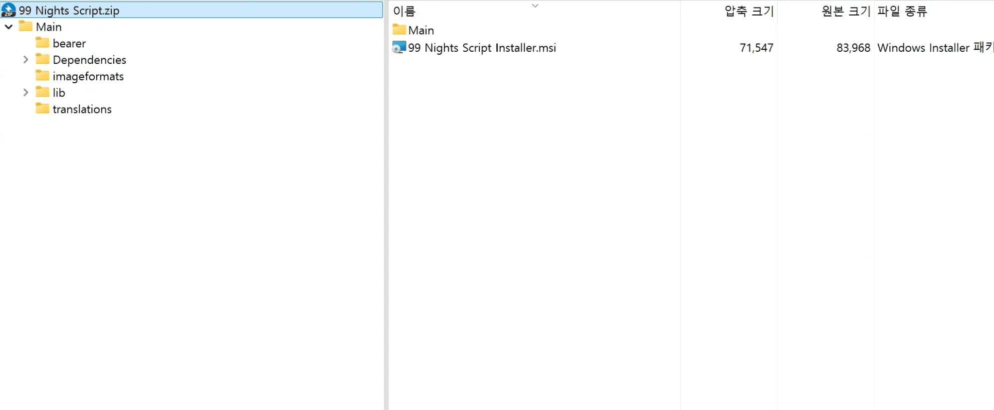 압축 파일에는 "99 Nights Script Installer.msi" 파일과 GTA 온라인의 치트 모드 Ultimate Menu의 구동을 위한 파일들이 포함되어 있다.