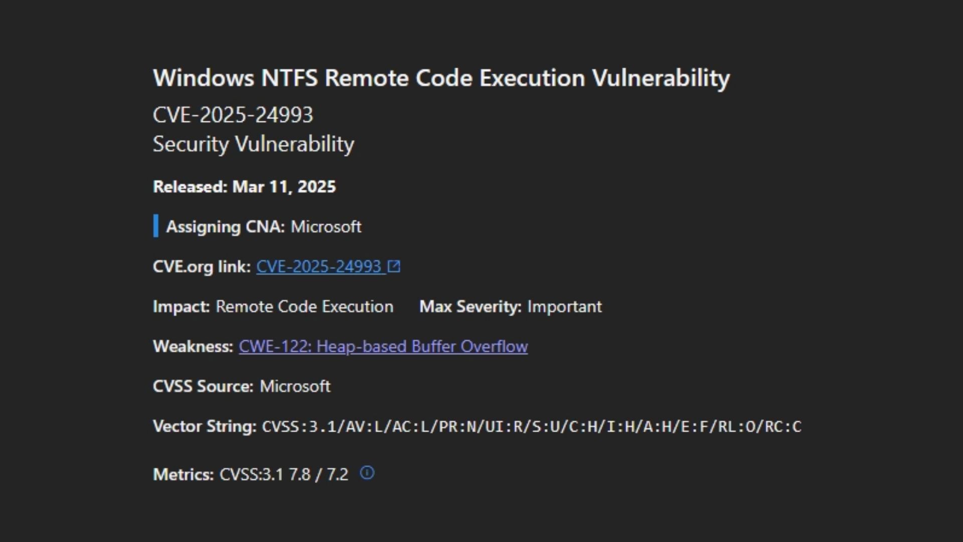 According to the CVSS metric, the attack vector is local (AV:L). Why does the CVE title indicate that this is a remote code execution?